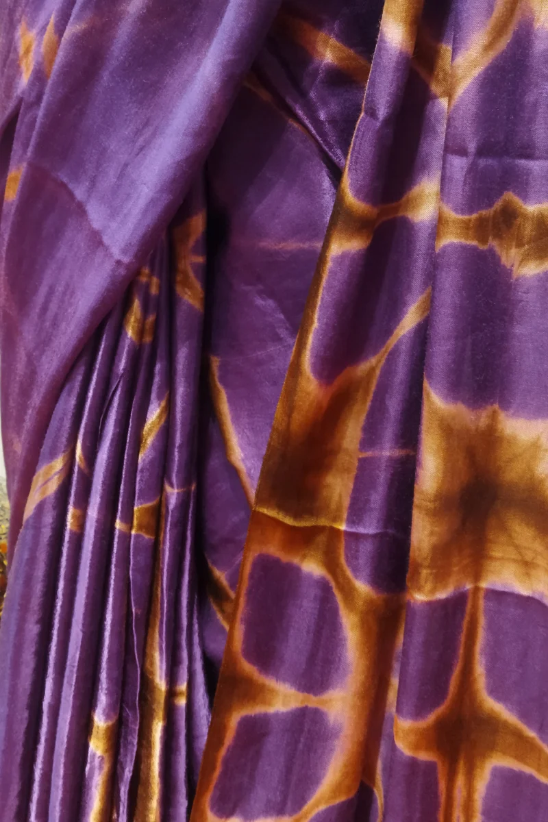 Experience the elegance of tradition with this purple clamp dyed vegan silk saree, a true masterpiece of handloom artistry. The hand dyed saree, clamp dye technique is more than just a method — it’s a signature of premium craftsmanship that reflects the skill, patience, and dedication of Indian artisans.