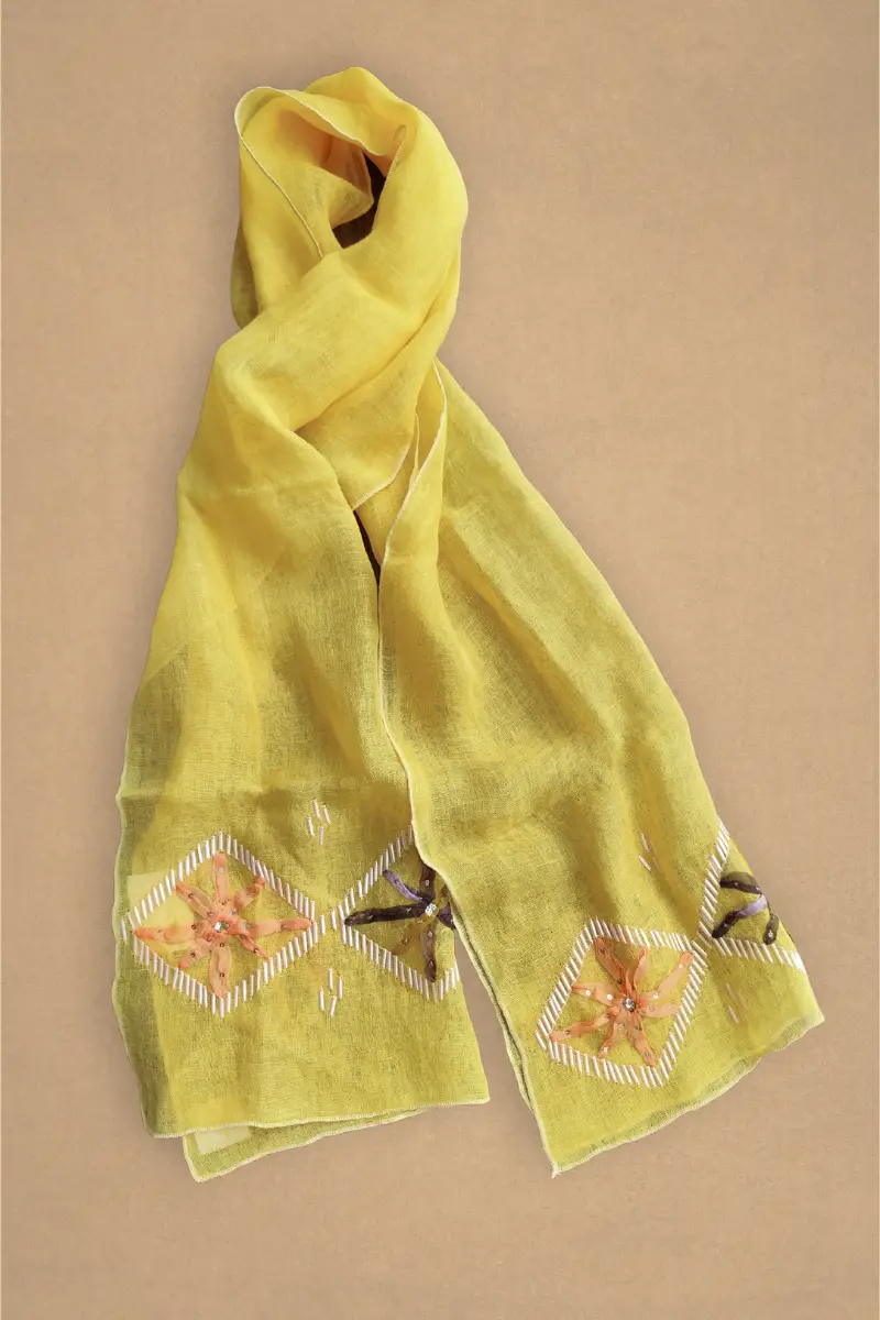 Pure Linen Scarf – 100% Yellow Linen Stole for Women by Kaarigar