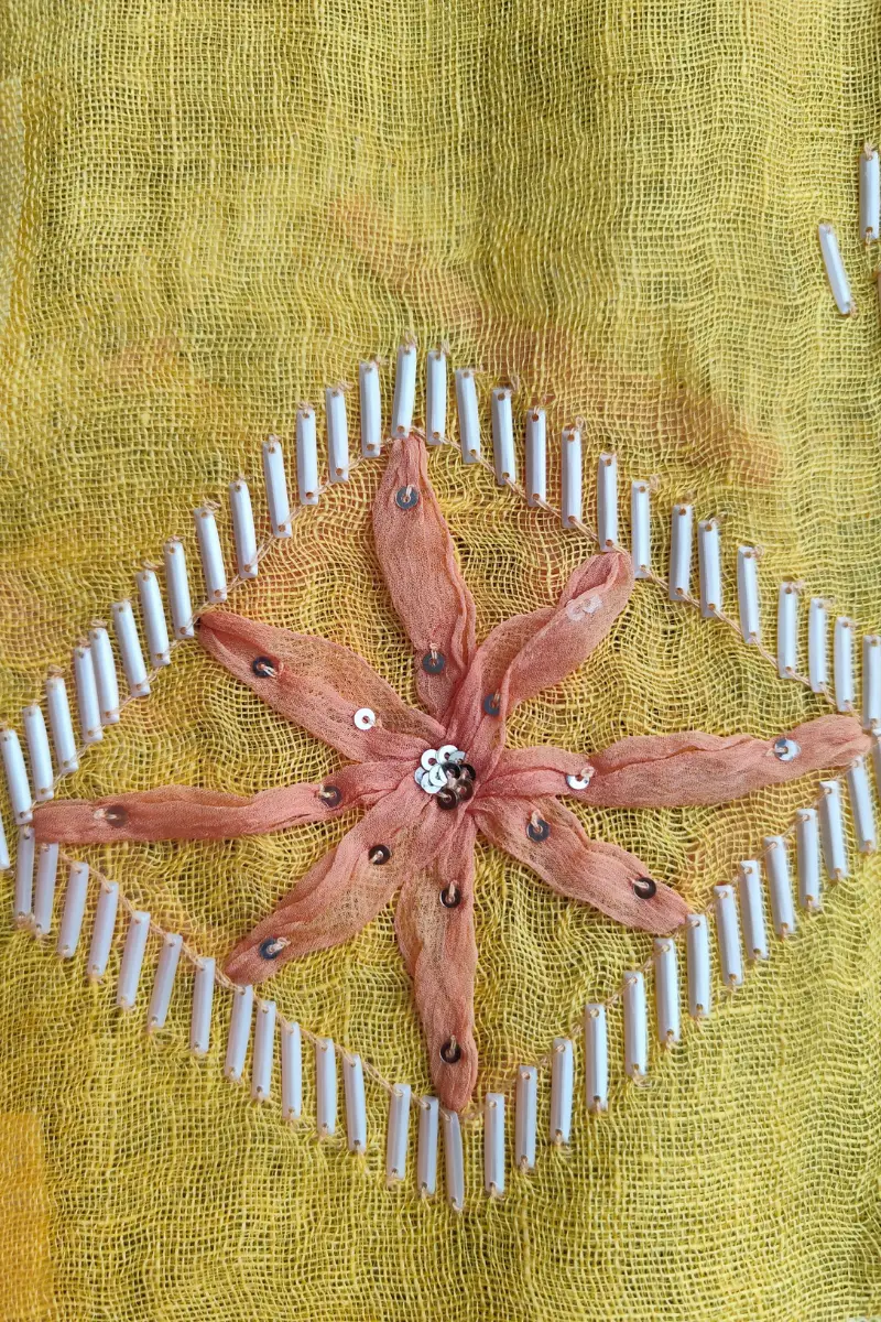 Made from 100% pure flax linen, this stole is free from harmful chemicals and synthetic blends. The weave is light yet strong, and the soft yellow hue is dyed using eco-conscious methods to preserve the natural integrity of the fabric.