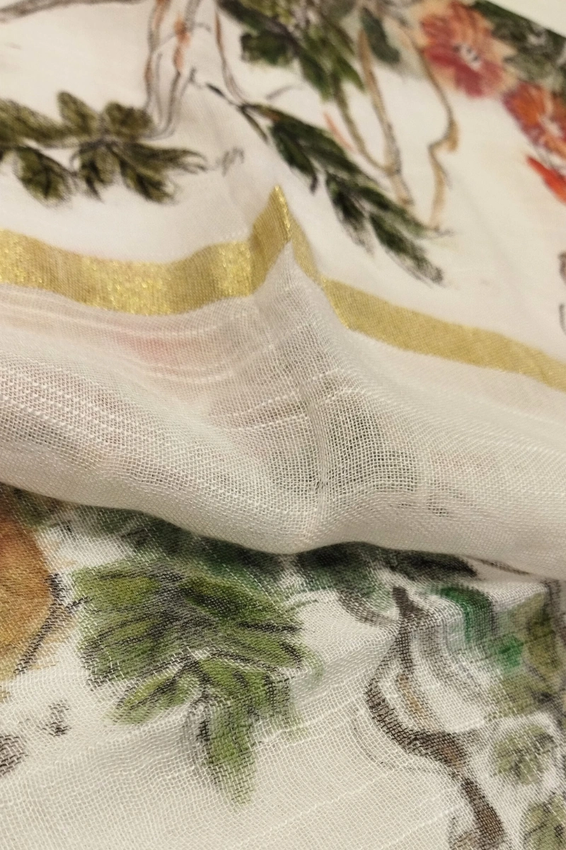 Dupatta: A pure linen dupatta featuring delicate brushstroke florals, offering both beauty and comfort.