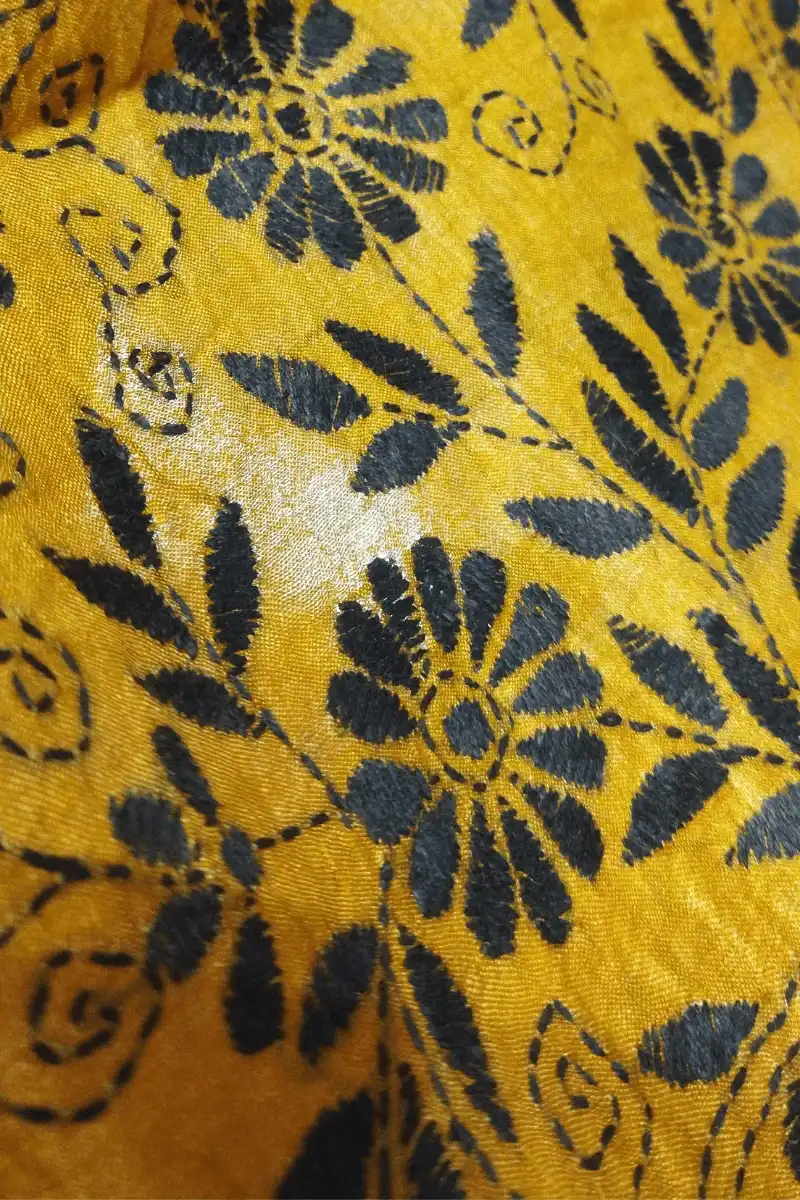 Tussar silk, celebrated for its distinctive sheen and textured weave, holds an earthy elegance that sets it apart from other silks. Woven on handlooms, it retains a natural golden tone that complements the vibrant yellow dye, giving the fabric a luminous finish. The weave feels crisp yet supple, draping beautifully without heaviness. Kaarigar works closely with traditional silk weavers to ensure premium stoles remains ethically produced and environmentally conscious.